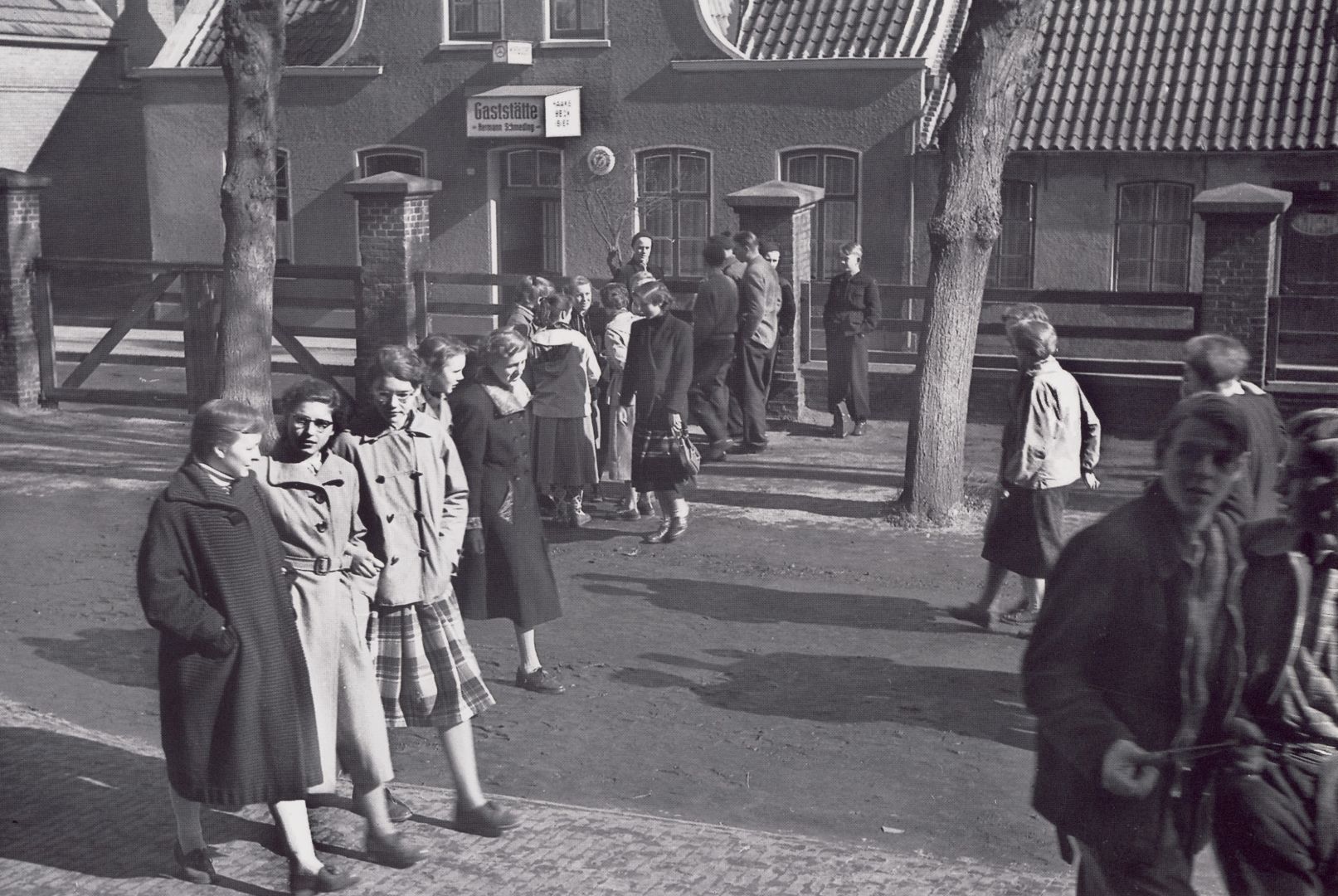 Datei:Norddeicher Straße Ulrichsgymnasium Pause Gaststätte Schmeding um 1955 01.jpg