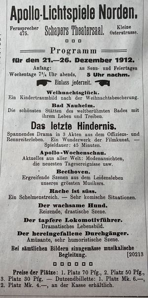 Kinoprogramm von Dezember 1912.