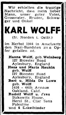 Nachruf der Familie auf Karl Wolff.